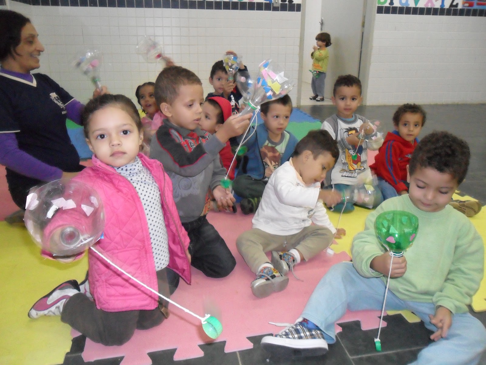 Berçario 2 com atividades de musicas e danças na sala.